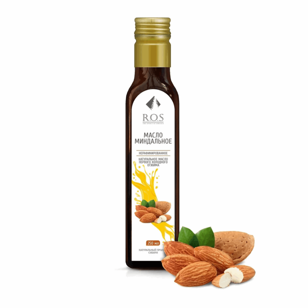 Миндаль богат витаминами группы В и Е, белком, железом, цинком, содержит примерно 40% дневной нормы кальция и магния, а фосфора в нем больше чем в других орехах. Миндальное масло устойчиво к окислению, поэтому оно не содержит перекисных радикалов, которые могут ускорить старение кожи. Биологическое действие миндального масла определяется неомыляемой фракцией, которая содержит токоферол и ситостерол, обладающий прогестероноподобными и антиоксидантными свойствами.